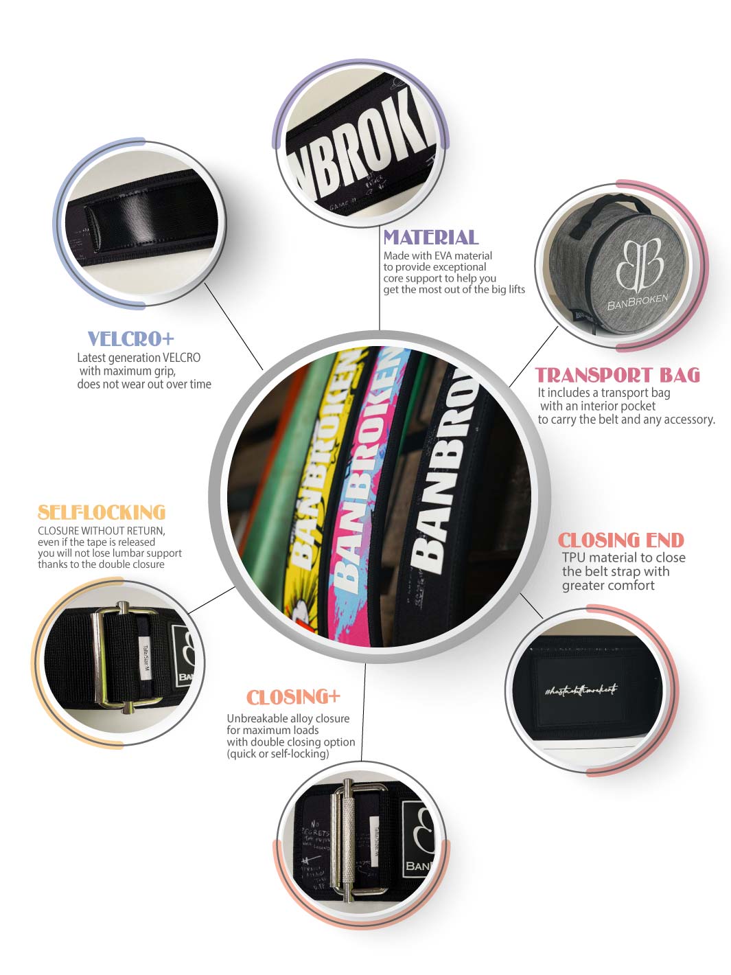 The EVA belt provides exceptional core support to help you get the most out of big weight lifts. The comfortable belt features a strong Velcro closure with a smart stainless steel buckle, where you can choose between quick release (for easy tightening/quick release adjustments during workouts) or a permanent safety closure to maintain maximum tension .